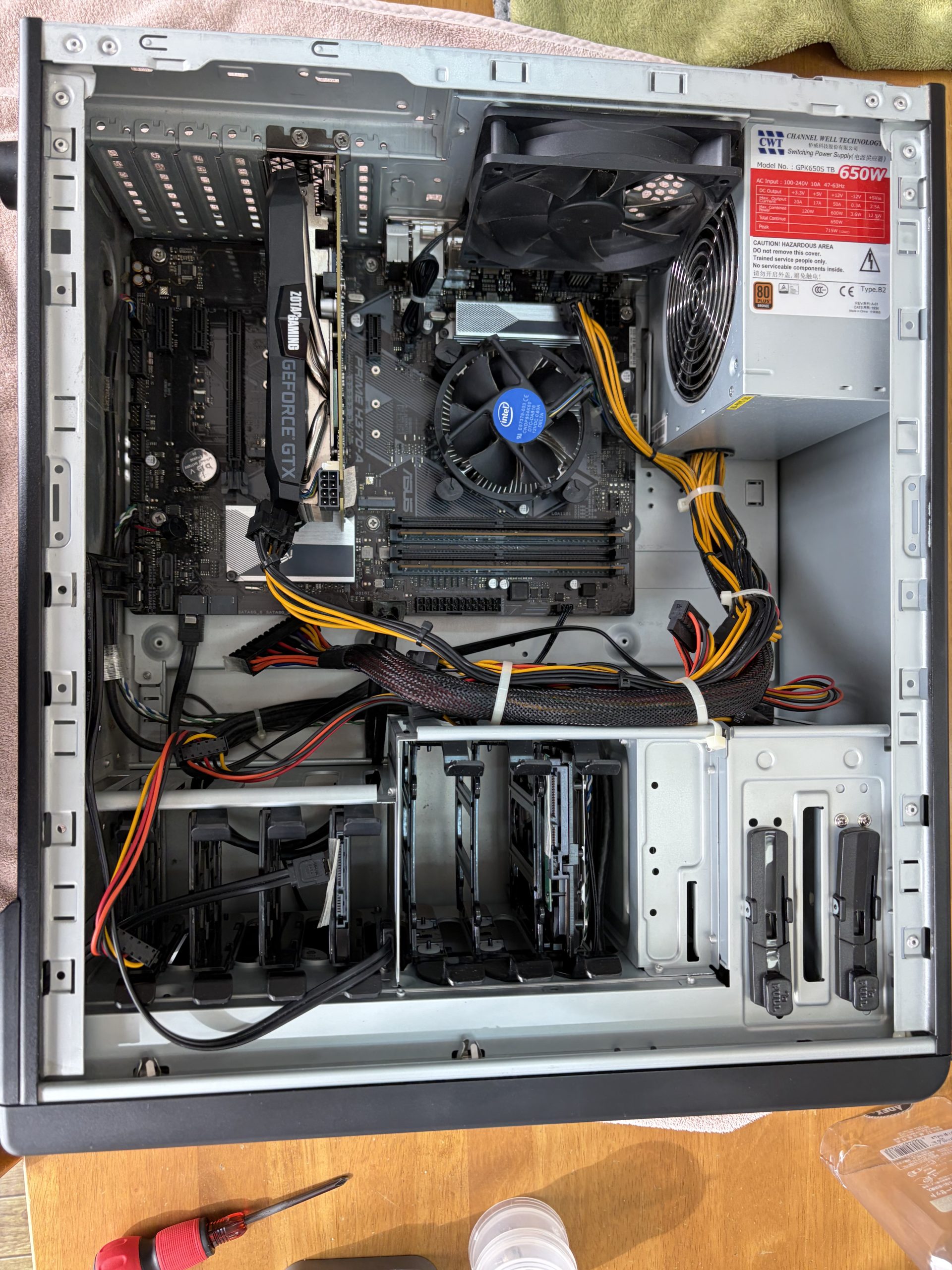 グラフィックボードの取り付けやその他配線をして完了です。